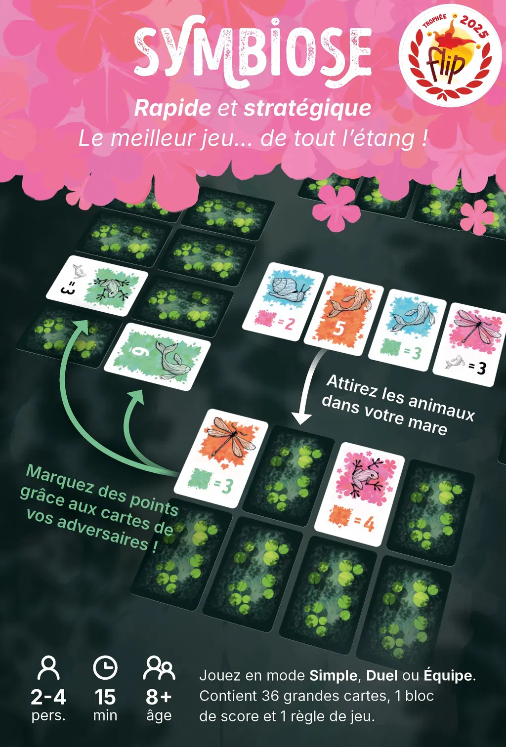 đž Symbiose est un jeu de stratĂ©gie accessible et malin qui invite les joueurs Ă crĂ©er des Ă©cosystĂšmes en associant plantes et animaux. Simple Ă comprendre mais riche en rĂ©flexion, il offre des parties rapides et captivantes, idĂ©ales en famille ou entre amis.